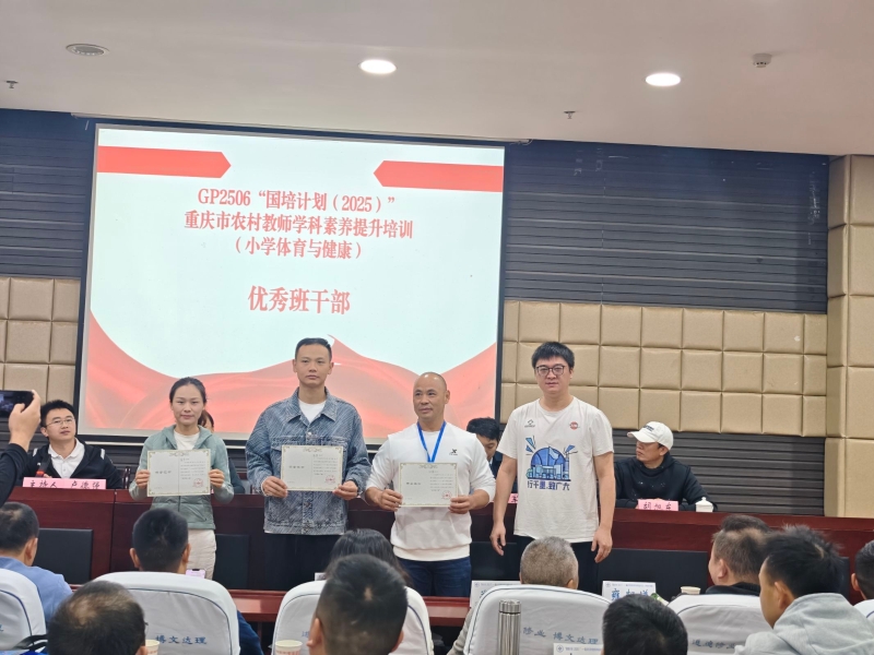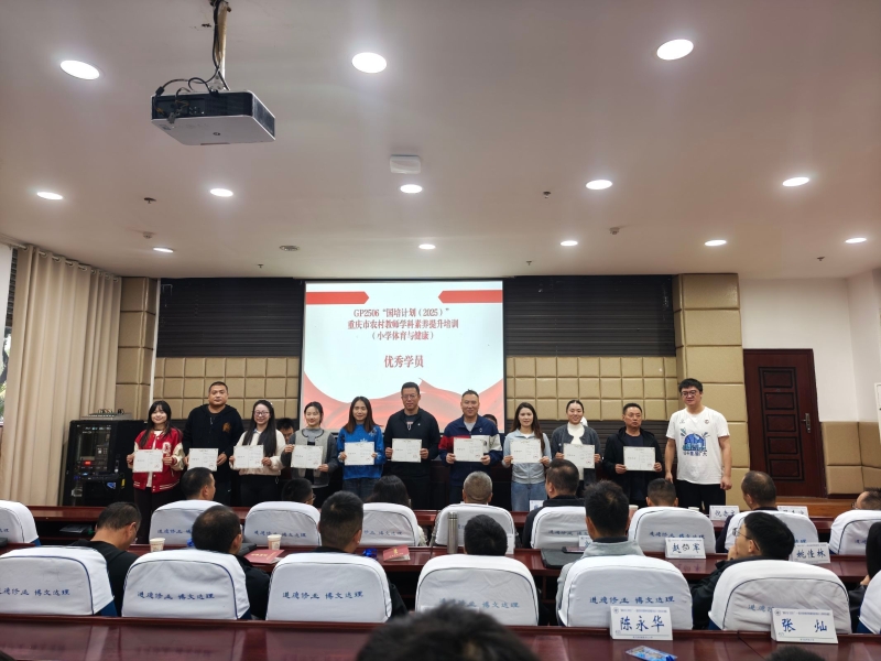 10月30日,我校承办的重庆市国培计划(2025)农村教师学科素养提升培训小学体育与健康结业典礼在志仁楼114室举行,学院党委副书记、院长夏赟,党委副书记、纪委书记余继军,培训班班主任出席,典礼由班主任卢德强主持。